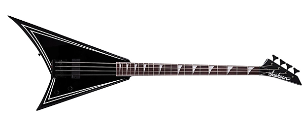 - Jackson Rhoads RR-B IV Limited Edition: ‘X Series’ Rhoads bass that isn't Jap. domestic for once. Made in ??. Poplar body, bound maple neck (neck-thru), Amaranth fretboard with pearloid sharkfin inlay, 21 frets. 34" scale. EMG 35DC humbucker pickup. Vol, tone. Hardtail bridge. Finishes: black w/ white pinstripe.