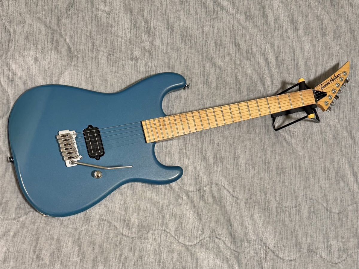 - Grover Jackson Falcon Custom: A unique model and predecessor to the Caparison Horus guitar. Created by Itaru Kanno. Mahogany body, quarter sawn maple bolt-on neck. Rosewood fretboard with pearl sharkfin inlays. 27 frets, 24.75” scale length. Jackson J-DA/S-8F SH pickups. Schaller JT-590 tremolo. Vol, two-way pickup switch. Gold hardware. Finishes: blue faience